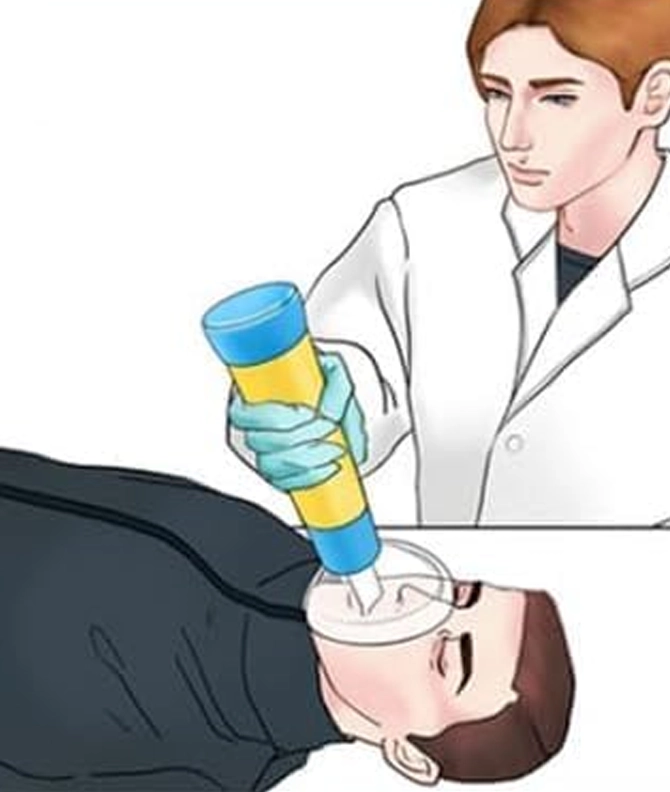 Attach the proper-sized mask to the device and place it over the nose and mouth - create a good seal.